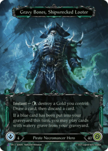 Flesh and Blood High Seas brings us the brand-new Pirate Necromancer “Hero”, Gravy Bones! People have been asking, hounding after a Necromancer to be added to Flesh and Blood, and now we finally have one. All weekend long we saw players make use of the new heroes and mechanics, starting from the World Premiere on Friday through the Calling and Battle Hardened on Saturday and Sunday. All the while, players participated in sealed events and experienced the brand new cards before anyone else.
