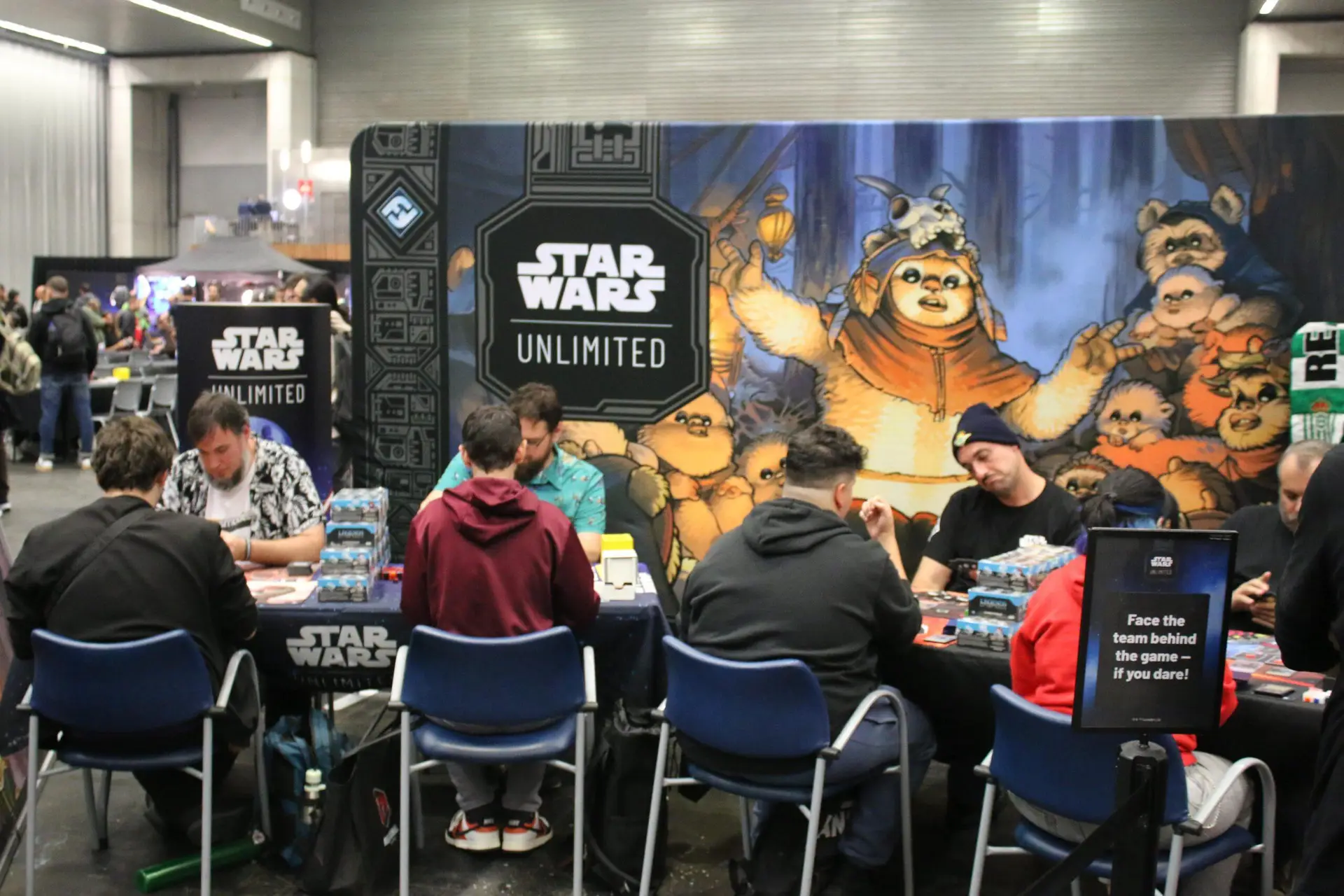 Once the games started firing, they never stopped. All through the weekend there were activities and exhibitions. Alongside the artists as special guests, we had several of the developers and designers of Star Wars™: Unlimited themselves at the venue. They were happy to chat and talk to anyone who came over, and for the brave of heart, willing to accept any challenge. In fact, the team even issued an event-wide challenge, if you can beat them in a game, you could take home an entire booster box of Legends of the Force.