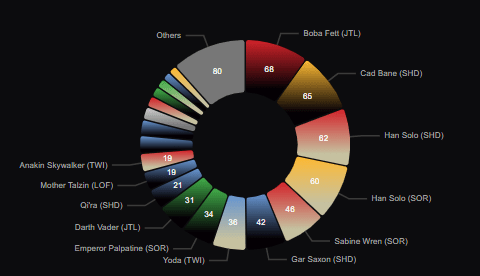 In an amazing graphic found on SWUbase and SWU Competitive Hub, we can see the breakdown of all the leaders played. The most played Leader was Boba Fett – Any Methods Necessary with 68 players, making up roughly 10% of the field. Following shortly behind was Cad Bane – He Who Needs No Introduction and Han Solo – Worth The Risk, with 65 and 62 players retrospectively. In fact, the top 6 decks all held a sizable representation, showing a pretty wide and diverse metagame.