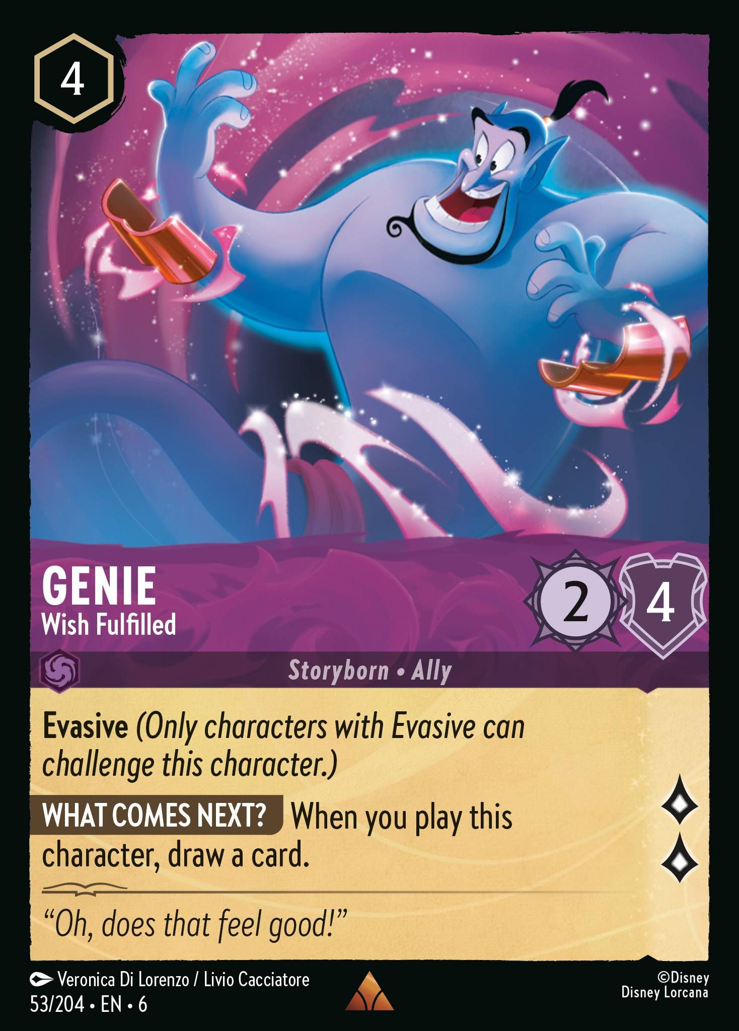 Once we’ve arrived in the mid-game, the deck starts playing a slew of evasive characters like Elsa – The Fifth Spirit, Peter Pan – Shadow Finder, and Genie – Wish Fulfilled. We see many tools to keep up the card advantage, and here is where Amethyst supplements its skill set to Ruby quite well. While the Ruby cards are quite adept at removing other characters, with cards like Be Prepared, Maui-Hero to All, and Brawl, we see that there aren’t many ways to generate new cards in hand. Maui – Half-Shark continues to be a dual threat with the lore gain on playing actions while also returning action cards to your hand for more card generation. We see a single copy of Hades – Ruthless Tyrant make the cut from Reign of Jafar, being another way to generate more cards, dig further into your deck, and provide an additional body on board. It being 7 cost also he can also sing Be Prepared.